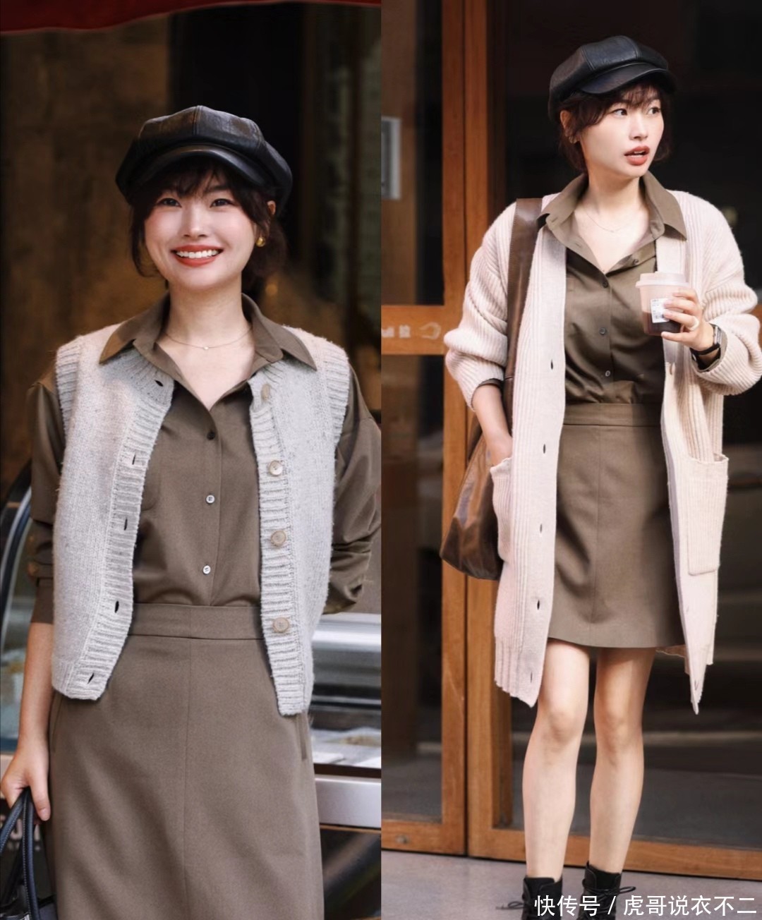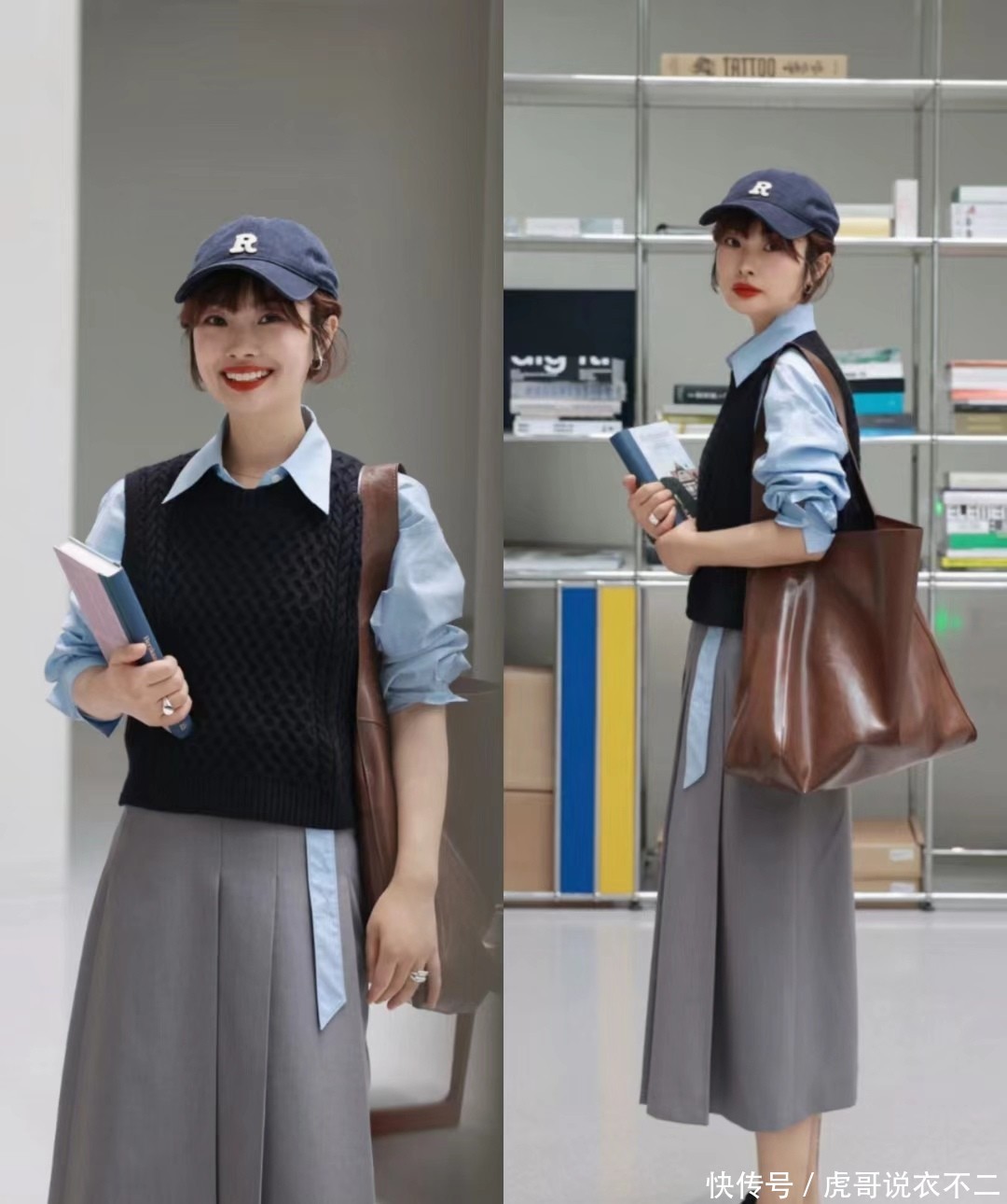地面色的衬衫会给东谈主一种认真实嗅觉,在外面不错叠加比它色号稍稍浅极少的开衫马甲,幸免神情之间相互“打架”。