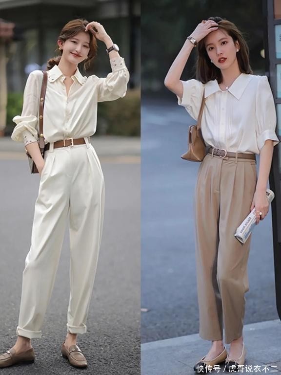 夏令穿搭当中有几种终点终点步调的成例穿搭示范,如果你不太擅长职场上的穿衣搭配,又不想要花费时辰我方去连接,那就不错径直照抄照搬这种成例的搭配方式,第一种即是衬衫搭配西装裤的方式,衬衫不错选拔正肩白衬衫,也不错选拔带有领结的白衬衫,下半身搭配西装裤或者是铅笔裤的技能不错合乎的尝试亮色系,然而视觉袭击性弗成太强。
