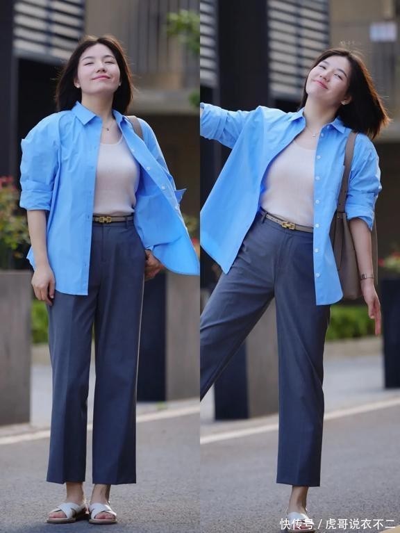 二、夏令通勤穿搭步调示范1、衬衫+西装裤