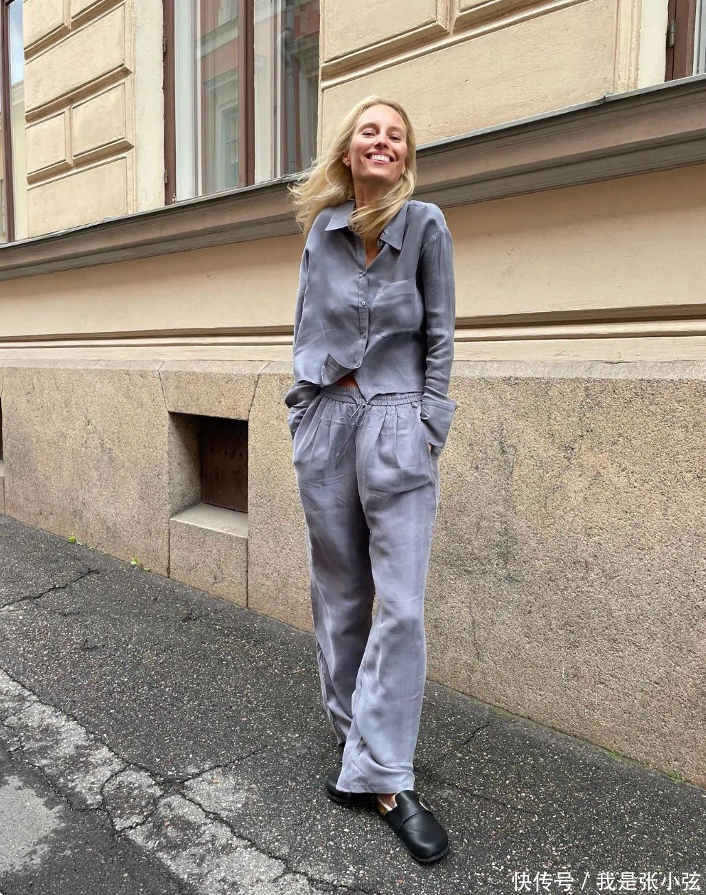思要穿出躺平的嗅觉,就千万不要错过“居家服”,比如条纹元素的衬衫套装,看上去像寝衣本色上时尚感满满,以致有许多女明星早就也曾尝试过了。像这种寝衣套装,千万不成穿的一册庄重,选拔的条纹不错一半竖向一半横向,再搭配上东谈主字拖大约很好的加多娴雅感。