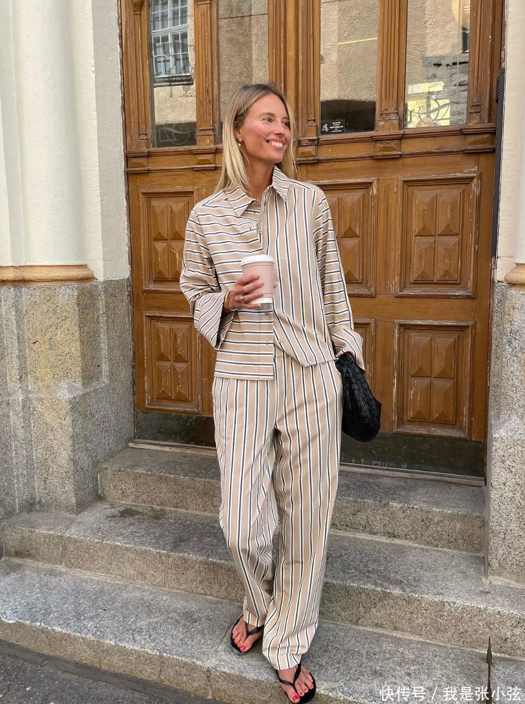 攻略②条纹衬衫套装+东谈主字拖